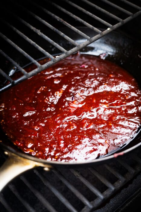 Gebruik van rookhout zoals appel of kers versterkt de Aziatische toetsen en geeft een subtiele zoete rooksmaak aan het vlees. Voeg bij het begin van de bereiding een handje rookhout toe voor een zachte rookinjectie – overdrijf niet, de saus zal later ook nog smaak toevoegen. Gebruik je een Pellet Smoker? Maak dan gebruik van de “supersmoke” functie als je deze hebt. Zoniet, dan kan je nog altijd een smoker tube gebruiken voor extra rooksmaak. Lees deze en nog meer tips in mijn nieuwe boek: “Wood Pellets Taste Better“.