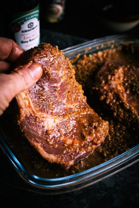 - Leg de steaks in de marinade en laat ze minimaal 4 uur marineren in de koelkast, of langer voor een intensere smaak.