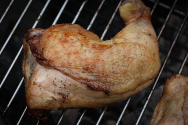 - Put the thighs over indirect fire (+-150°C/300°F) for about 1- 1.5h. till a core temperature from about 70-72°C (160°F)