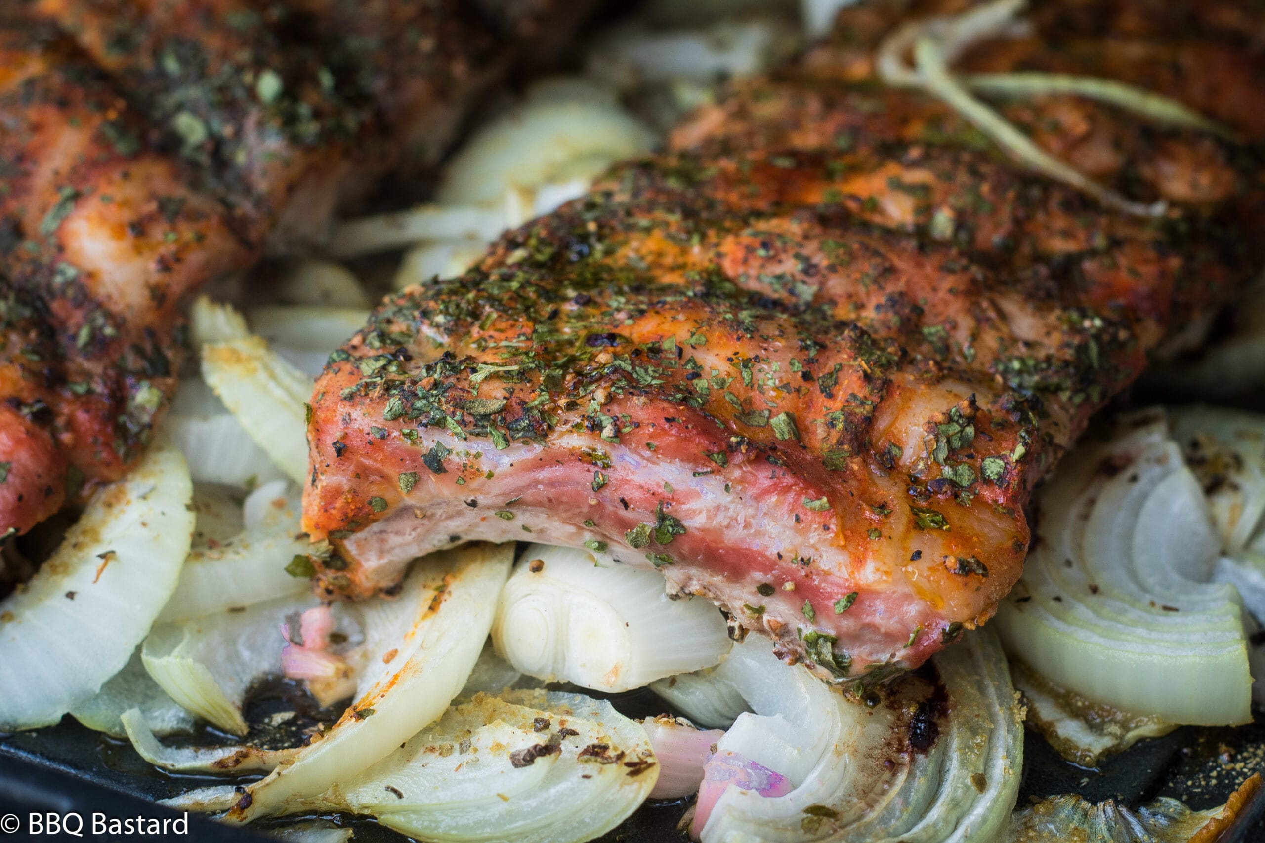 What better day could I have chosen for the preparation of these ribs? The ribs were cooking low and slow in my kamado while I was gardening (low and slow). You should have smelled my garden. Those onions were driving me crazy in the garden (and my neighbours seemed to be pretty curious too haha). After a day in the garden the ribs were a tasteful fitting treat bringing some extra power to my body. I made two slabs of ribs for me and the kids hoping there would be some leftovers for the day after. Unfortunately my wife was pleasantly surprised by the taste too and decided to eat along. Even the kids who were constantly talking about the heat of the ribs asked for more. Result: no leftovers…