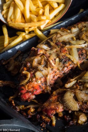 My intent with this blog is sharing you some recipes as a source of inspiration you could access for free. Bringing this content however isn’t free. Therefore I make use of affiliate links to cope with the costs. These links bring me a small referral commision for the products you could buy after clicking the links. This support helps me running this blog. I guarantee no false statements will be made on this blog and only products I believe in will be linked. Hoping you understand this decision. Thank you! :). In this post: - There's an affiliate link on the "Platesetter", "Food From the fire", "Plat Prefere", "Sriracha sauce", "cast iron baking tray" and "mustard" All opinions shared are my own.
