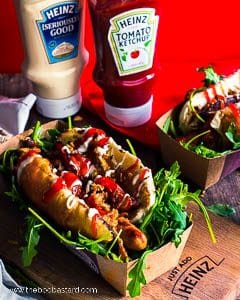 Do you long for a royal breakfast? What are you waiting for? This english breakfast hotdog is all yours! So let me know when you’ve made them on social media! And while talking about social media, if you would do me a favor I’d be sending back some BBQ love to you! Please take a moment to go to this post on instagram and make a comment with @the_bbq_bastard to vote me to another victory in the Heinz Favorite foodie contest.