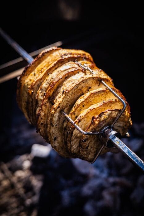 - Spit: Kies een stevig spit dat lang genoeg is om de knolselder plakken te passen. Traditionele draaispitten of elektrische modellen zijn beide geschikt. Zelf maak ik gebruik van het spit op mijn Barbecook Magnus (Klik hier voor een review van het toestel).