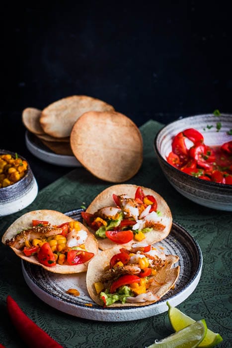 - Baste a layer of guacamole on the tacos and add the smoked codfish on top. Finish with the pickled tomatoes and sweet and sour corn. Sprinkle some fresh cilantro on top of it. To boost the flavor add some of the fermented ketchup. In my opnion it helps to unite the flavors.