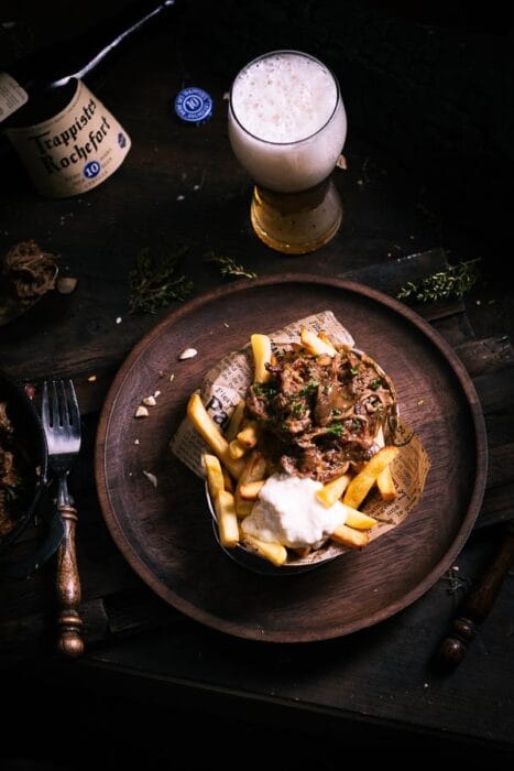 - Houd de saus goed in de gaten om te voorkomen dat te veel kookvocht verdampt. Voeg indien nodig nog wat extra bier toe als deze te snel indikt. Indien de saus te slap blijft kan je een slurry maken van één El bloem met 1 El water om de saus verder in te dikken.