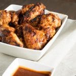 Net voor het serveren plaats je de kippenvleugeltjes opnieuw boven de directe hitte zone zodat de saus mooi kan karameliseren.