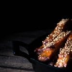 Baste the ribs when they are tender with the BBQ sauce and sprinkle some sesam seed on top of it.