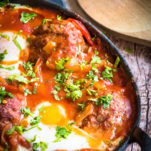 Add some freshly chopped cilantro right before serving this smoked meatball Shakshuka