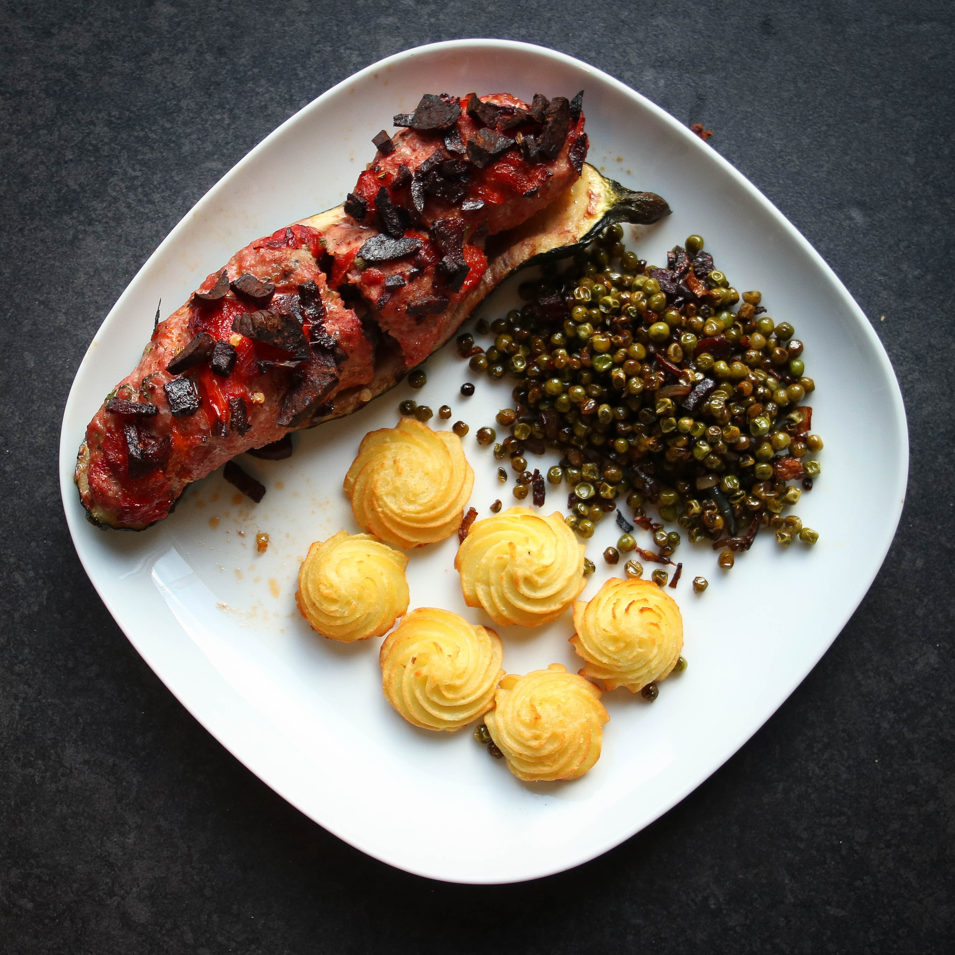 I made this recipe with fresh homegrown zucchini. Those following my blog for a while will know I had some difficulties in the cultivating process, but now they’re growing fast. Lucky for me they are among my favorite vegetables. I’ve been making this recipe for a while but I added the Sausage crumble and grilled sweet bell pepper for additional flavours. I’ve tried to keep the stuffing as pure and tasteful as possible. If you like zucchini as much as I do, you might like to taste this grilled zucchini soup or grilled zucchini pickles too!